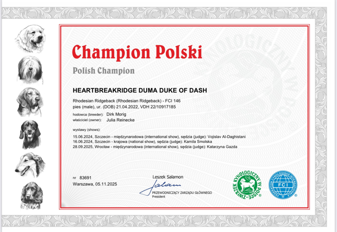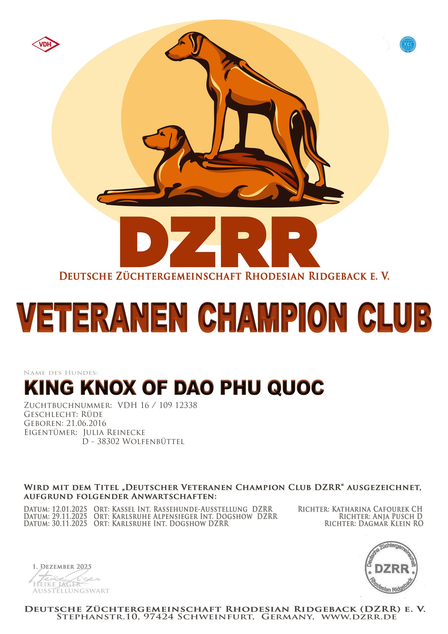 Und passend zum VDH Champion hat er auch noch den Club DZRR Champion erlangt! Juhuuu 🙂
